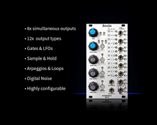 Output and Modulation types include Pulses, Gates, LFOs, Digital Noise, Loopable S&H modes and a collection of Arpeggios and Rhythmic Loops.